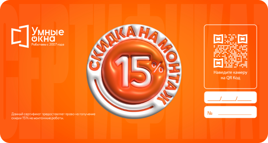 Дополнительная скидка в размере 3000 рублей на заказ окон. Можно получить в качестве «секретного приза» от замерщика.