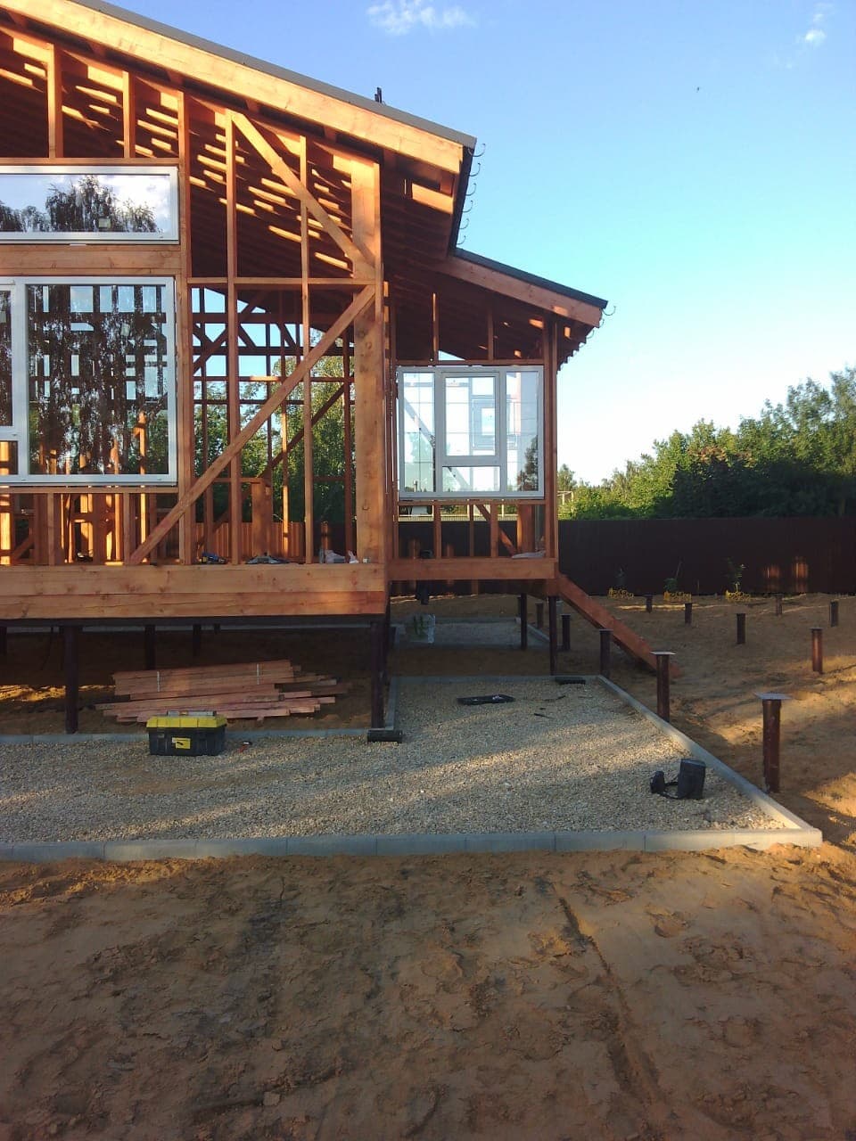 Выполненные работы: Остекление второго этажа загородного дома, Установлено 9 окон, Некоторые изделия покрыты ламинационной пленкой, профильная система REHAU Delight, Фурнитура Siegenia Titan AF